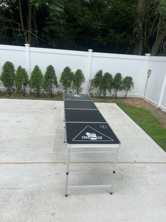 Level up your party with our 8ft portable beer pong table. Perfect for gatherings and celebrations, this foldable table is easy to set up and ready for friendly competition at your event.