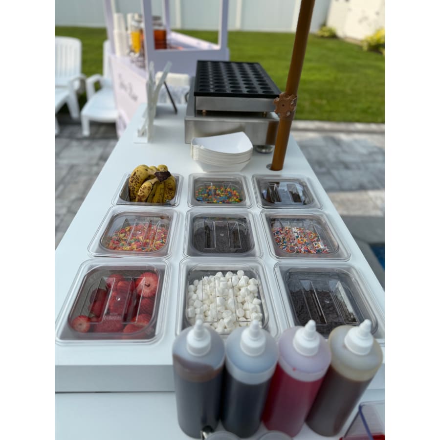 Our Pancake Bar Cart is the perfect interactive experience for brunches, birthdays, baby showers, bridal events, corporate gatherings, and more. Guests will love the fun of customizing their pancakes with a variety of delicious toppings—all served from a stylish, event-ready cart that complements any theme.