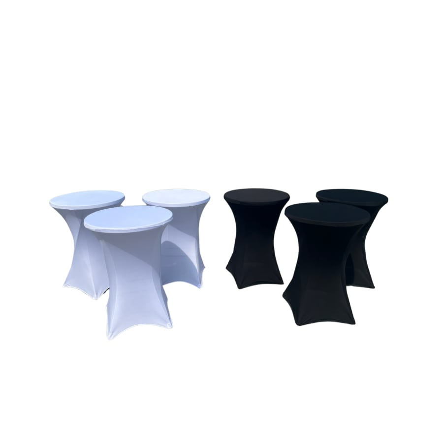 Rent sleek cocktail tables with fitting spandex covers to add a modern, polished look to your event. Perfect for mixers, receptions, or lounges. These high-top tables provide stylish standing space for your guests.